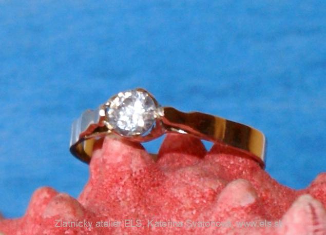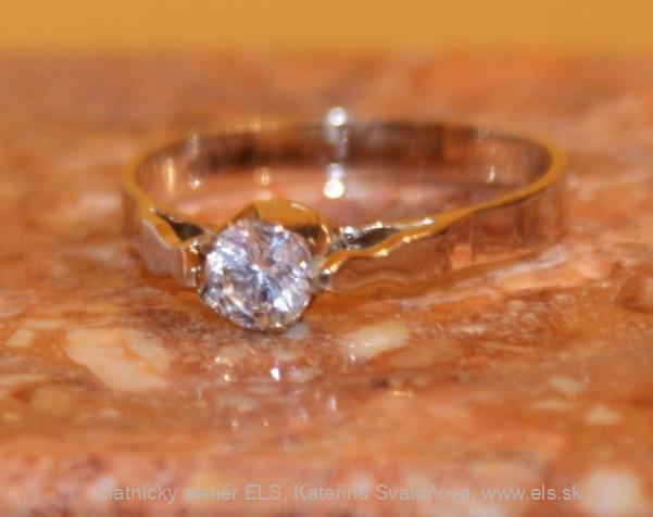 Zásnubný prsteň s diamantom,ELS. Zlato 14 k. Ručná výroba na Vašu mieru,k Vašim službám.